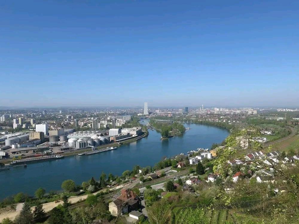 Mit Ausblick über Basel, den Jura und bei entsprechendem Wetter bis zu den Alpen