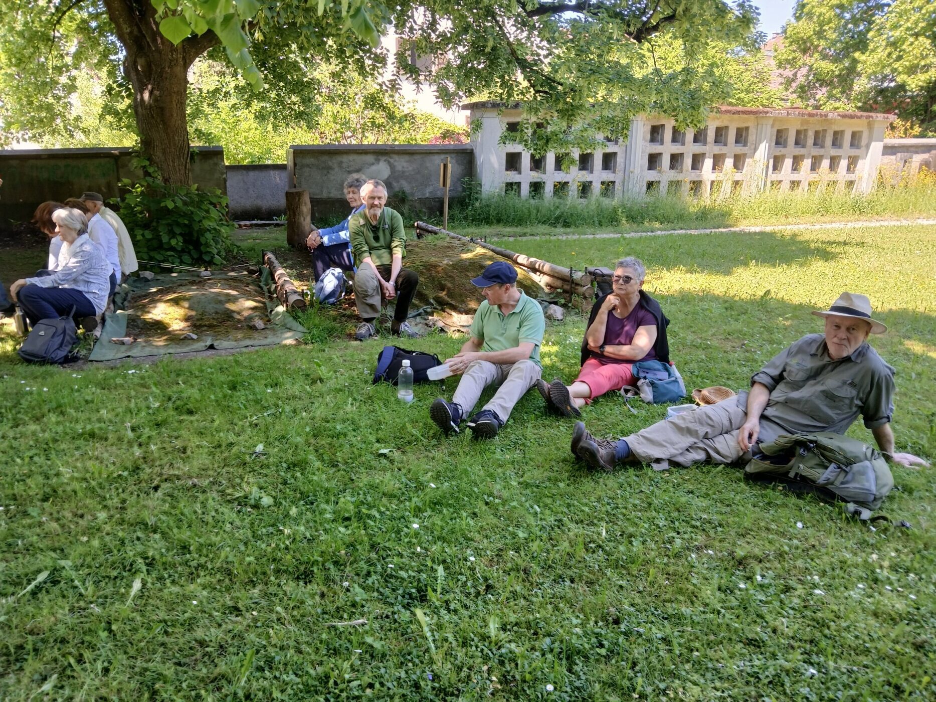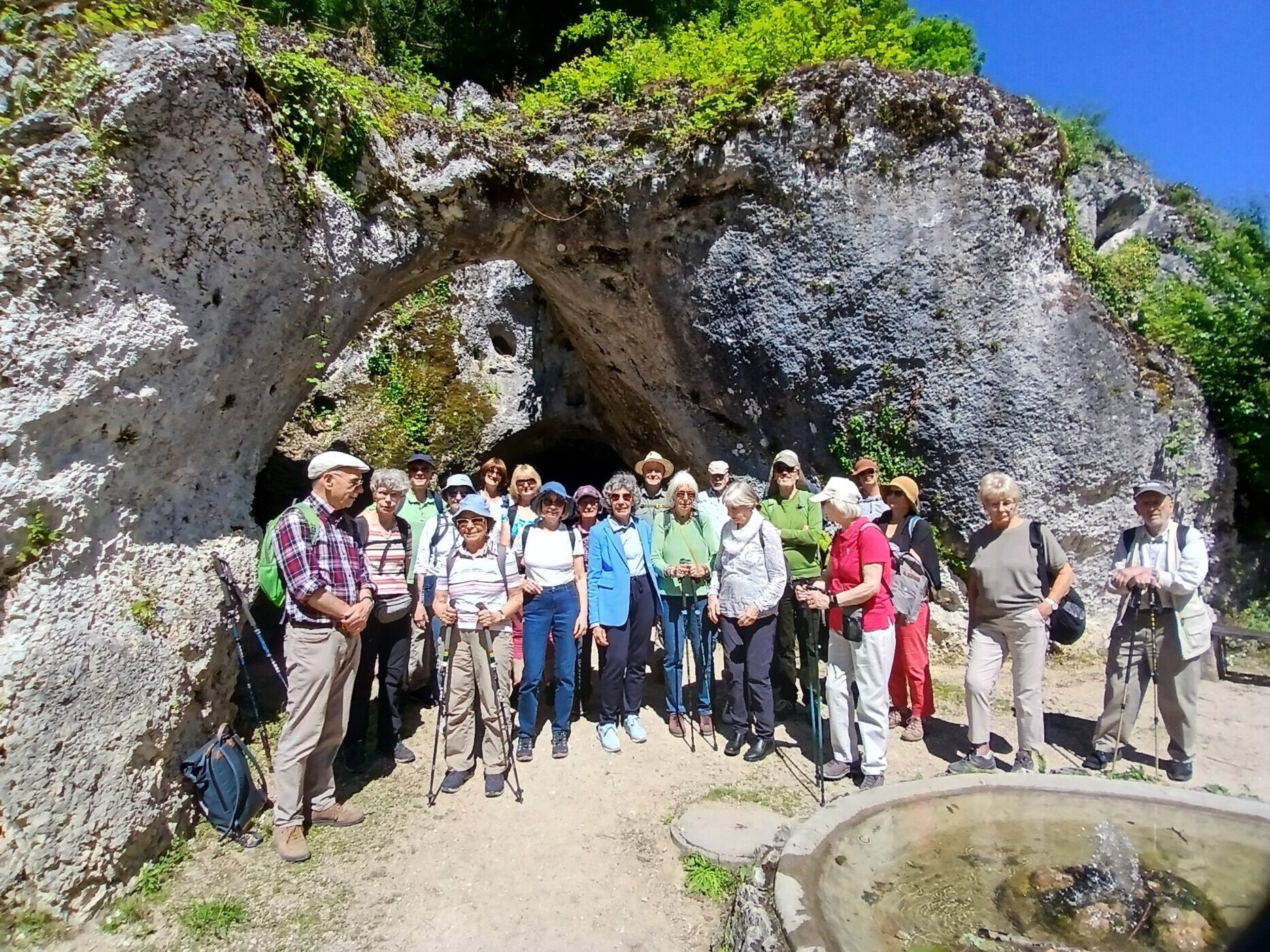 Höhepunkt des Ausflugs war der Besuch des Englischen Gartens in Arlesheim, die Ermitage. Der Garten war Ende des 18. Jahrhunderts in die wilde Felslandschaft des Jura hineinkomponiert worden. Er bietet dem Besucher überraschende Sichtachsen und im Zentrum eine Eremitenhütte mit einer Eremitenpuppe, die bei einer Geldspende nickt. Besonderen Felsen und Grotten (Diana, Apollo, Proserpina und Diogenes) hatten die Schöpfer des Gartens eine mythologische Bedeutung gegeben, die Dietmar Talkenberg erläuterte.