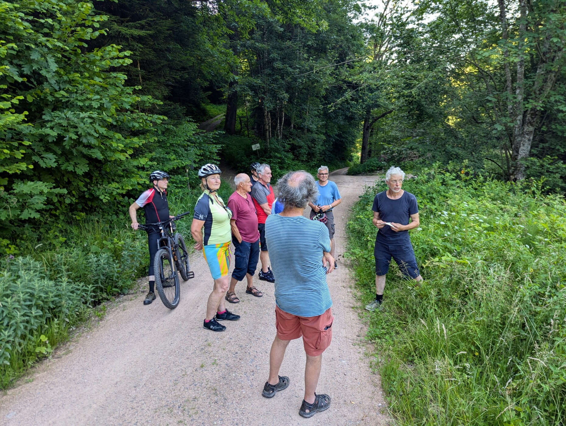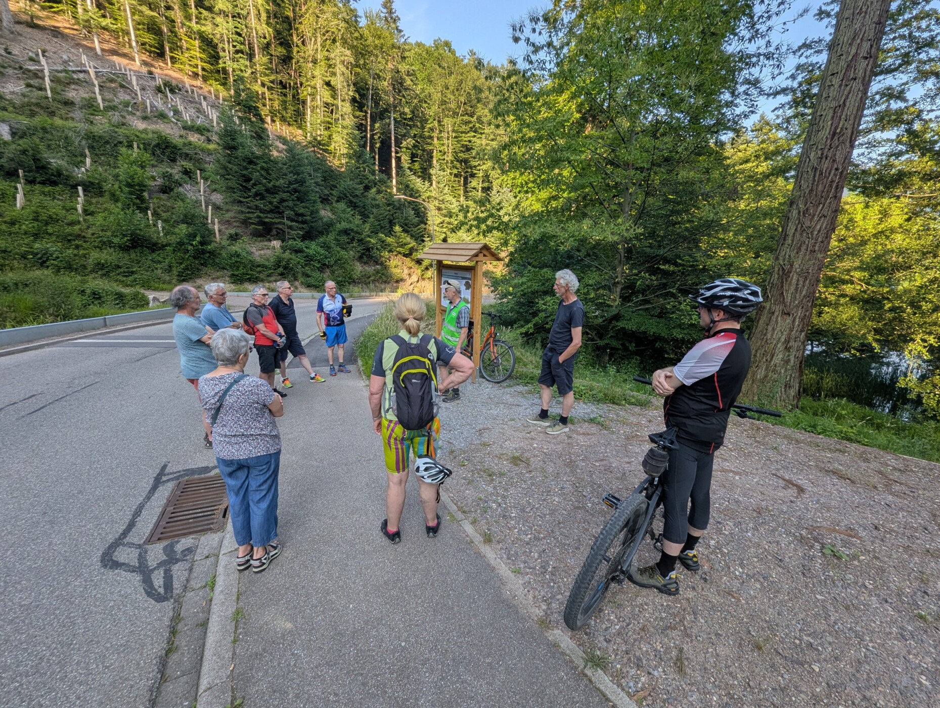 Matthias Nötscher, der bei Team 48° Süd den Bereich Landschaftspflege leitet, hatte die Tour organisiert und führte die bunt gemischte (auch hinsichtlich Motorisierung: E- und Bio-Bikes waren am Start) Radeltruppe, teils ordentliche Anstiege hinauf, durch die nähere Umgebung von Waldkirch.