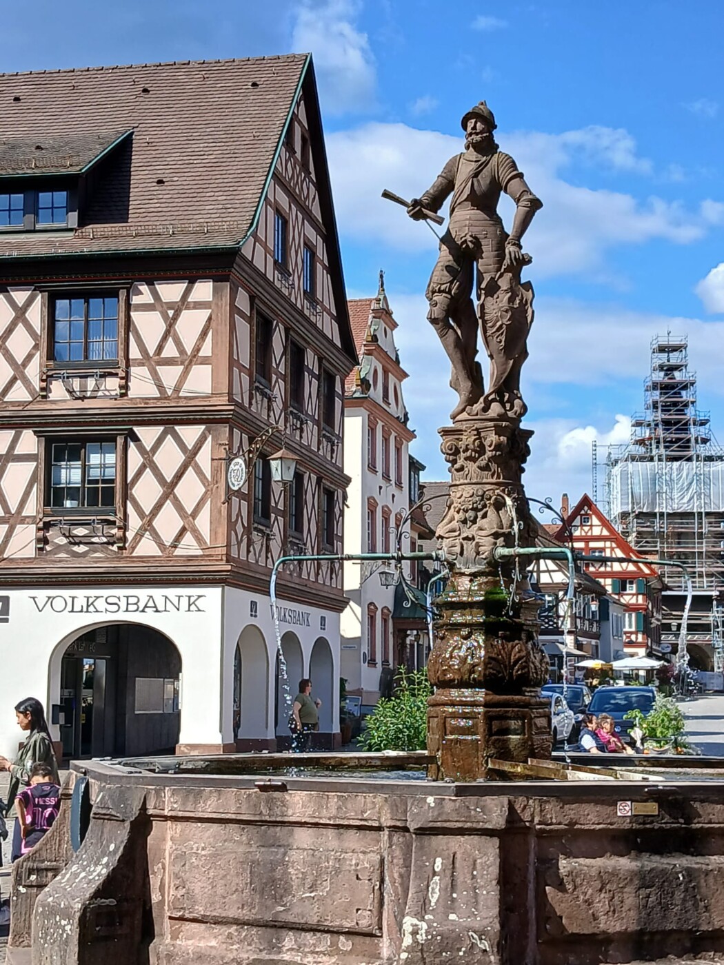 Die Stadtführung durch den ehemaligen 2. Bürgermeister, Herrn Reinhard End, wurde auch für die, die schon einmal in Gegenbach gewesen waren, zum Erlebnis. Herr End erläuterte, vor dem Alten Kaufhaus im Schatten stehend, die Stadtstruktur, den Ritter auf dem Brunnen und die wichtigsten Gebäude. Dann ging es ins Museum, in dem er uns interessante Einblicke in die Stadtgeschichte, die Geschichte des Klosters und in die Sammlung des Museums gab.