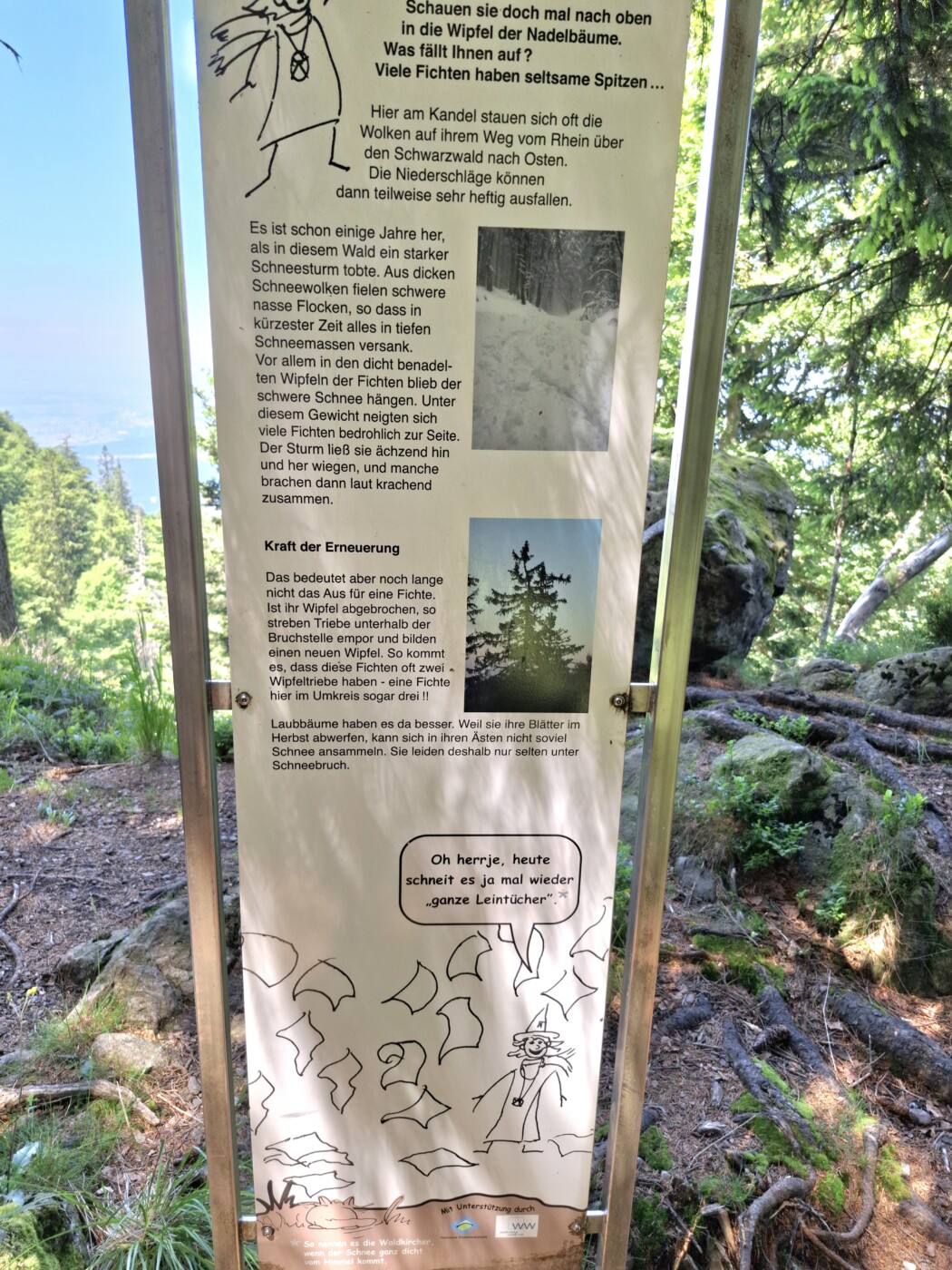 Fertig geworden sind wir noch nicht. Es gibt noch einiges zu tun. Und das regelmäßig immer wieder, weil die Pflanzen nachwachsen, Schilder bemoosen, Beschilderungen bei Forstarbeiten verloren gehen oder beschädigt werden und es leider immer wieder Menschen gibt, die unsere Arbeit mutwillig zerstören.