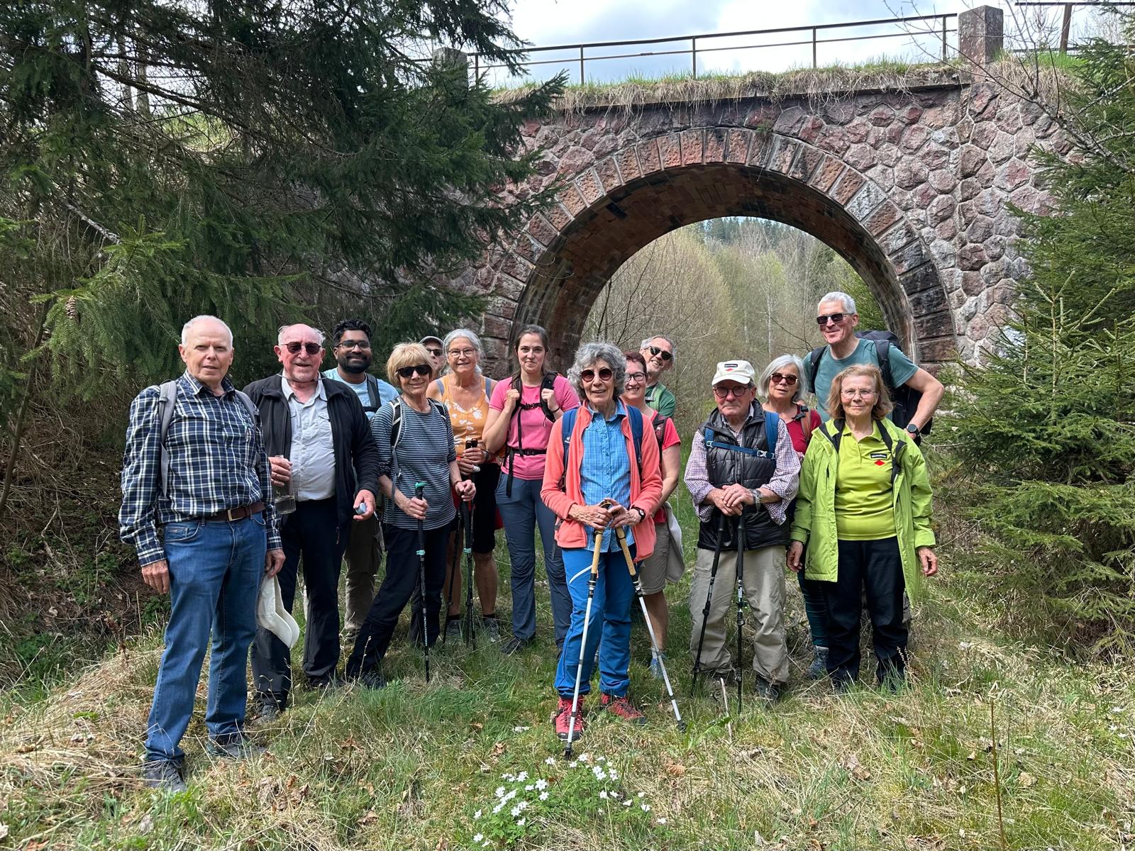 Über den Mühlenweg ging es in die Schlucht und über einen historischen Fuhrweg wieder kurz bergan. Entlang einer still gelegten Bahnstrecke passierten wir den Haslachfelsen und stiegen in die wild-romantische Schlucht hinunter. Parallel zum Wasserfall forderte der Aufstieg die Teilnehmer.