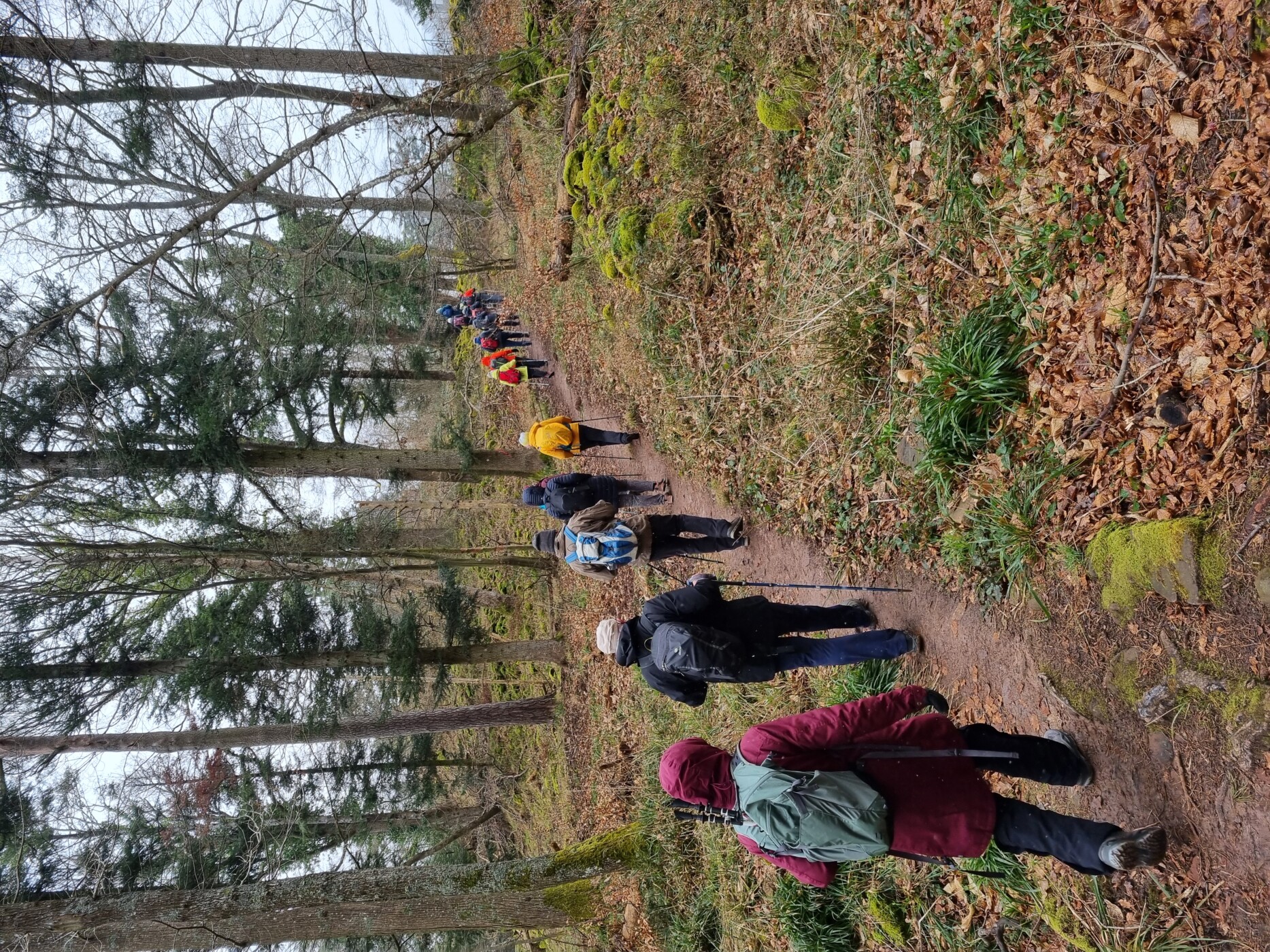 Die Gruppe aus 29 Personen startete bei leichtem Schneegriesel von St. Nabor zu den eindrucksvollen Ruinen der Abtei Niedermünster, einem ehemaligen Tochterkloster der Abtei auf dem Odilienberg.