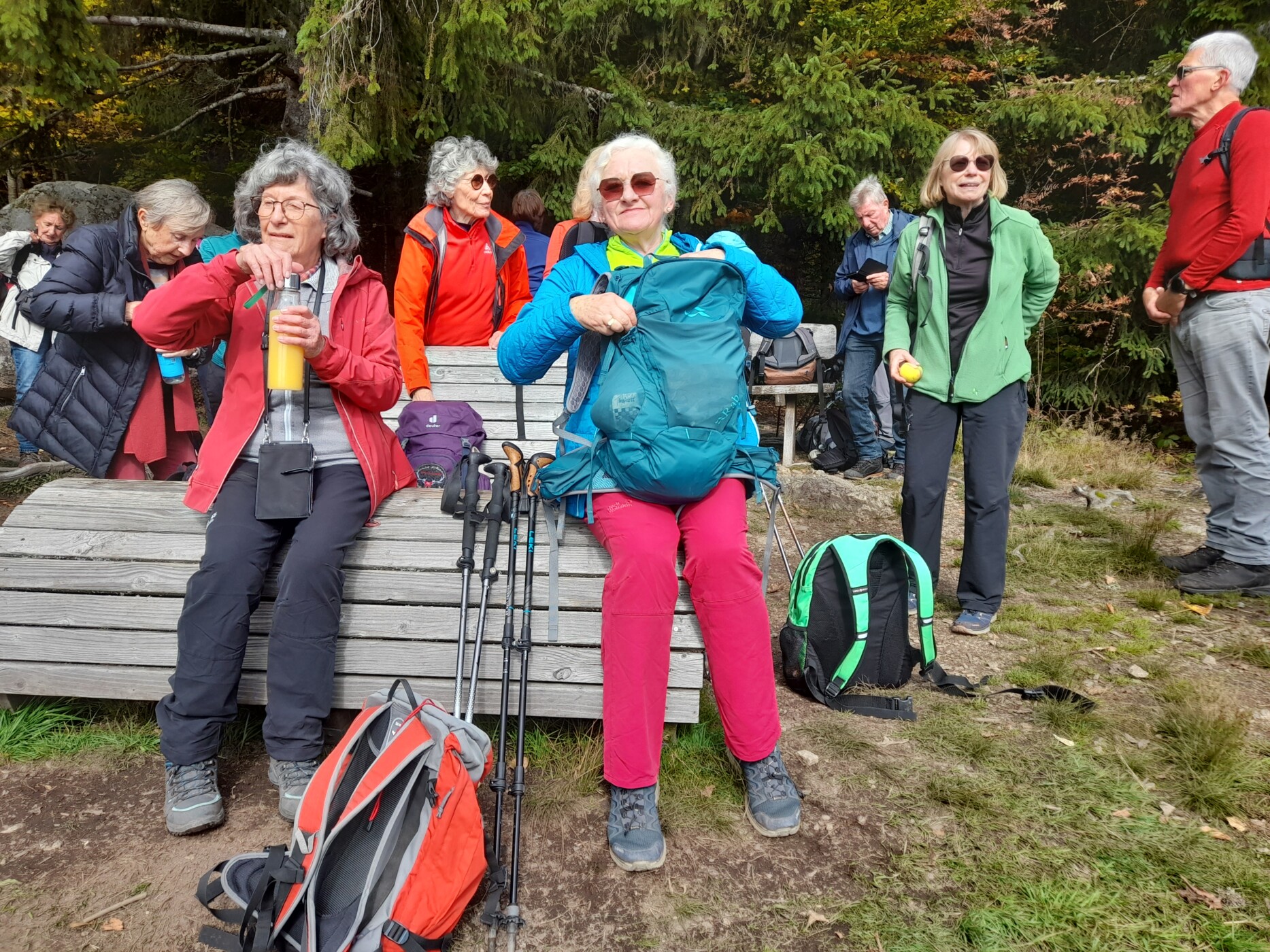 Auf dem Bildsteinfelsen angekommen, waren die 3 Bänke schnell belegt. Die Aussicht auf den Schluchsee, den Schluchsee`r Ortsteil Äule und den Feldberg belohnten die Anstrengungen.