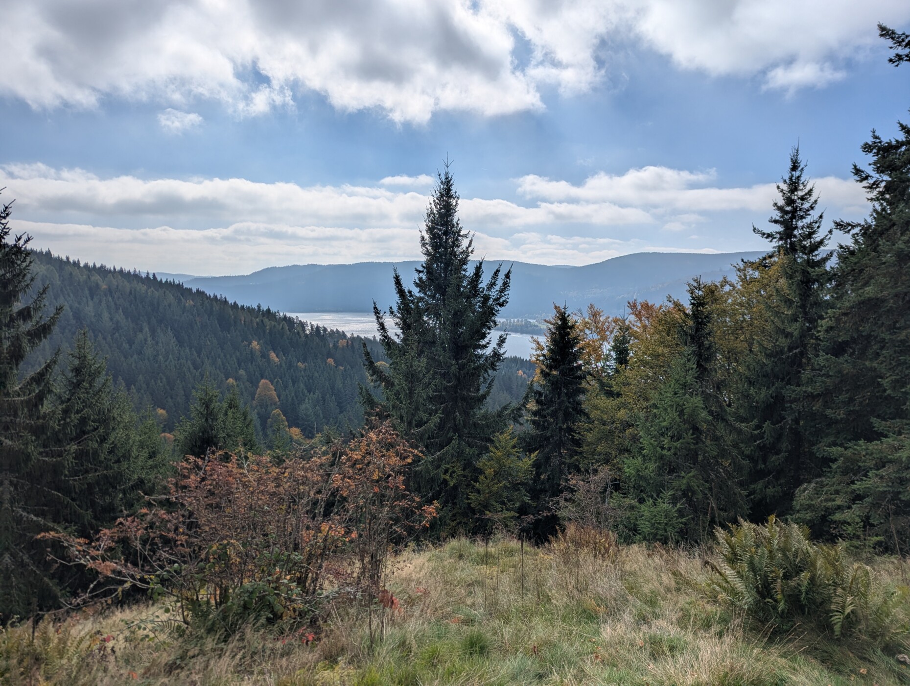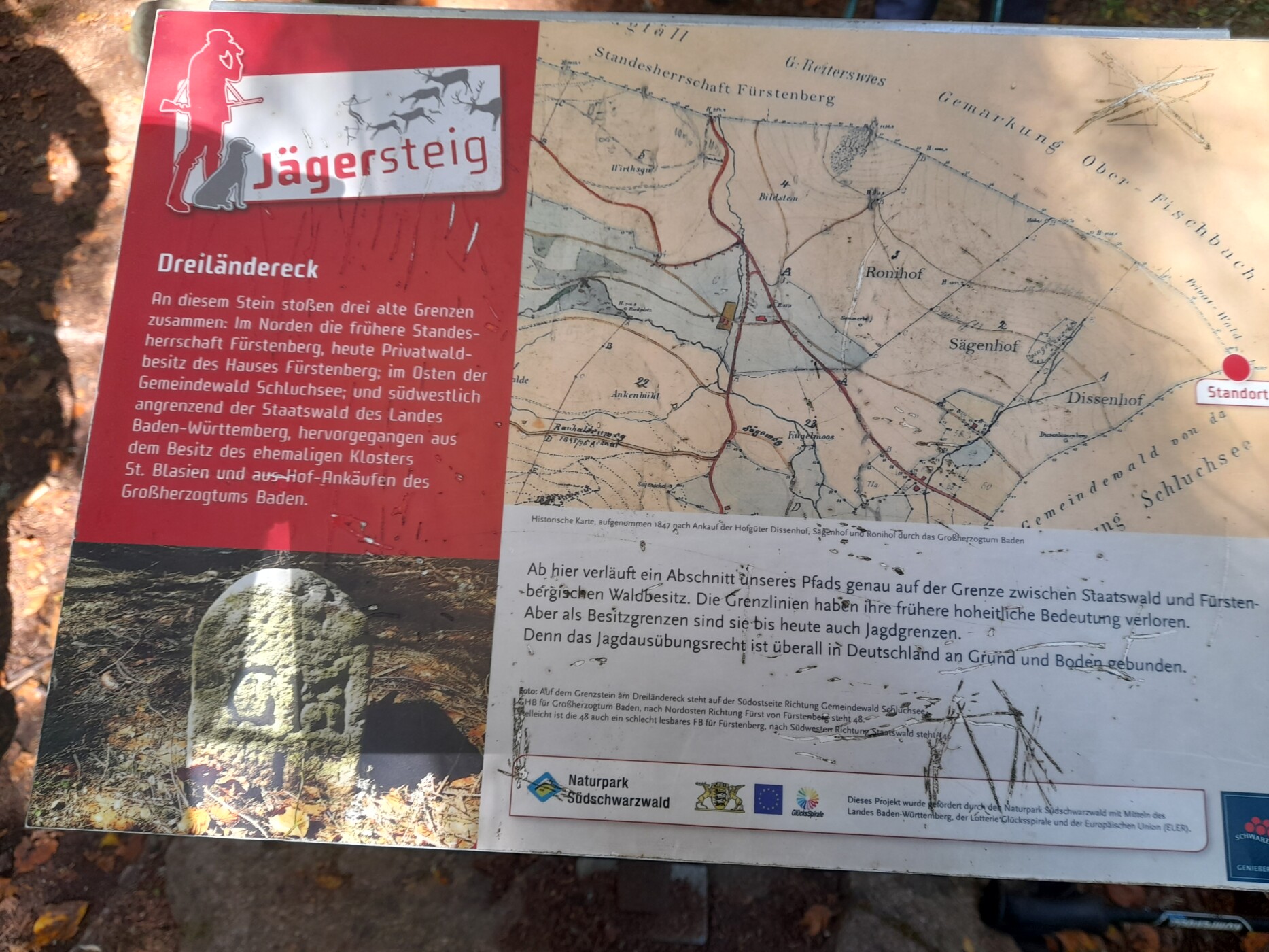 Nach einer Pause ging es auf dem Höhenweg am Schluchsee weiter. Teilweise auf dem Jägersteig und auf einem Grenzweg, der den Staatswald und den Fürstenbergischen Waldbesitz trennt.