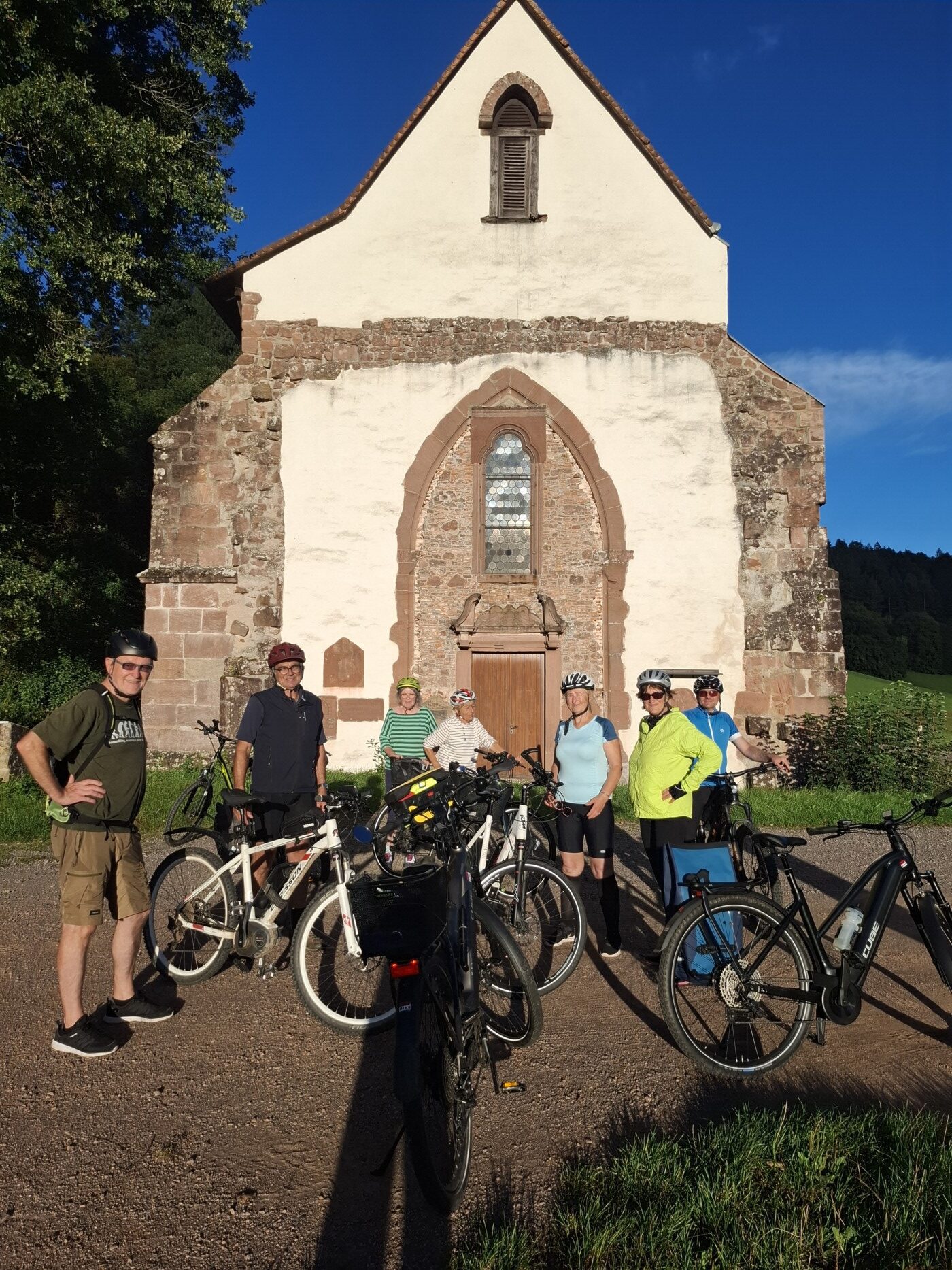„Statt Wanderstöcke mal Pedale!“, sagten sich etliche Feierabend-Radler des Schwarzwaldvereins Waldkirch-Kandel und starteten optimistisch zur Burgruine Landeck, nachdem sie bei der letzten Fahrt zur Zähringer Burg quasi in einem Monsunregen in der Dunkelheit 17 Kilometer zurückfahren mussten.