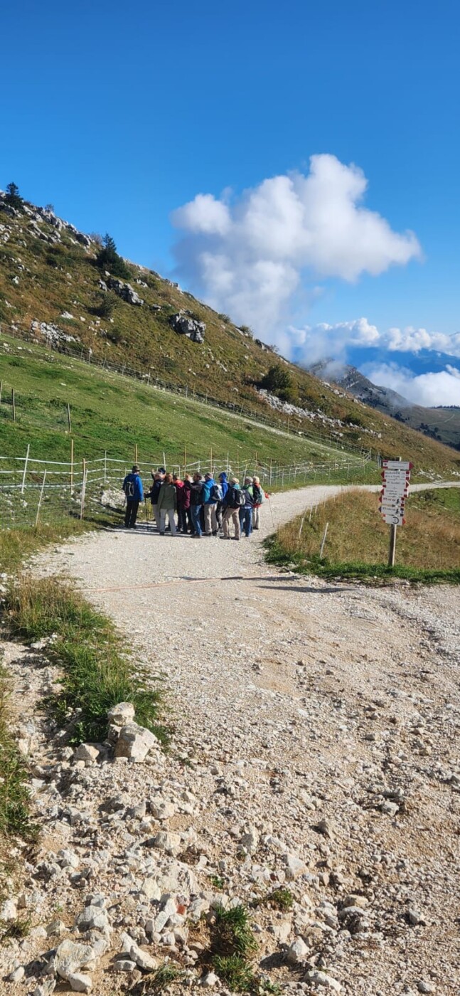 Am Donnerstag ging es hoch hinauf – 1760 m – mit der 360°-Gondel auf den Monte Baldo. Die rotierende Kabine bot einen märchenhaften Rundumblick. Oben angekommen, überwältigt von der Sicht über den Gardasee, begab sich die Gruppe auf den Rundweg. Dieser führte zuerst wieder abwärts, um dann mit einem heraufordernden steilen Anstieg wieder hoch zum Punto Panoramico Monte Baldo zurückzukehren. Gemütlich über die Hochebene zur Gondelstation konnte man den Rundumblick gebührend genießen.